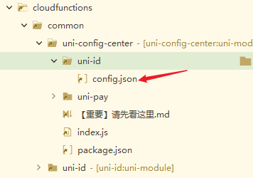 打开文件 cloudfunctions/common/uni-config-center/uni-id/config.json(没有则新建)(注意这里是config.json)